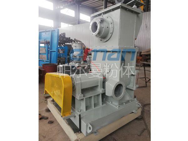 負壓空氣研磨系統的設備積垢問題經常是討論的焦點。設備的清洗,特別是輸送風機的清洗過于耗時。此外,在開機和關機過程中風機葉輪上的積垢還可能剝落,導致風機的振動及其運轉狀態的振蕩。因此可考慮由負壓流程改為正壓流程。在新的工作模式下風機安裝在分級磨之前,將工藝空氣壓入研磨系統。這種工作模式的優點是研磨后的碳酸氫鈉不通過風機運輸,完全避免了風機的積垢問題。此外風機的耗電也有所降低,使經營成本更低,但是對設備的密封性能提出了更高的考驗,無論是設備的設計結構、加工精度及配合都有嚴格的要求,設備的造價成本也會更高。