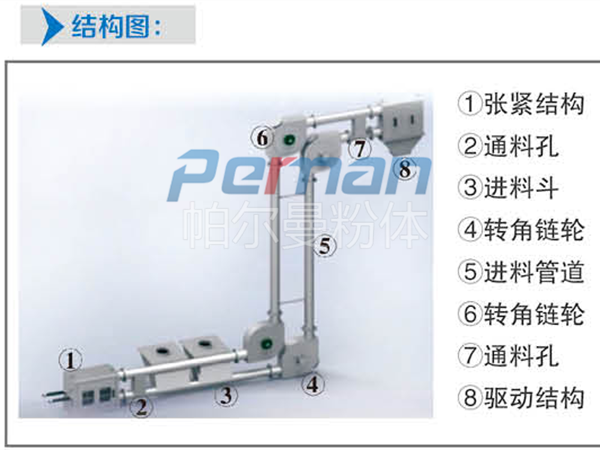 管鏈輸送機在輸送物料過程中,具有埋刮板輸送機輸送能力大,使用壽命長、維修費用低,密封性好,安全,耗能低的特點,也具備斗式提升機的垂直輸送的能力,同時布置更為靈活(水平-垂直/傾斜-水平),密封性能更高。物料垂直輸送中無回料,不破壞物料,不揚塵的特點。在輸送含水物料、易吸附物料、比重很輕的物料時,在機箱內可安裝電動清掃器。