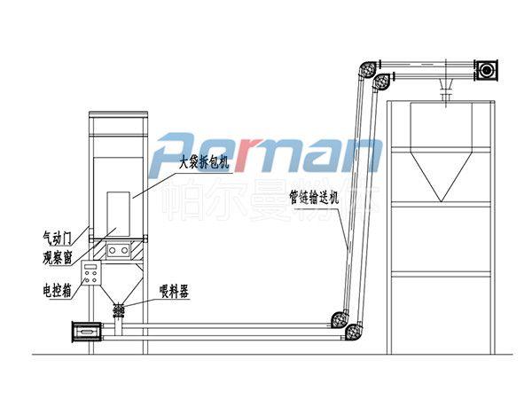 拆包管鏈輸送系統(tǒng)是在生產(chǎn)配合無塵拆包機(jī)和管鏈輸送機(jī)進(jìn)行生產(chǎn)的一種多功能設(shè)備系統(tǒng),能夠在生產(chǎn)中很好的實(shí)現(xiàn)物料的自動(dòng)無塵拆包并進(jìn)行后續(xù)的物料傳輸大大提高了生產(chǎn)效率。